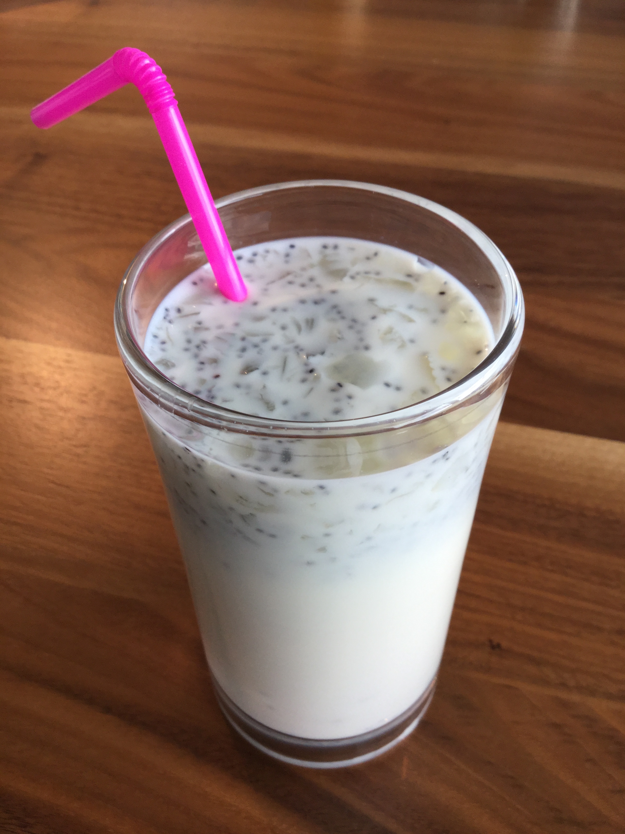 Bei unserem letzten Besuch auf Mauritius fanden wir auf der Frühstückskarte Alouda, eine Art Milchshake. Dieser ist auf der Insel eine Spezialität und wird in den Farben grün, rosa und vanillegelb getrunken. Im Hotel erhielten wir einen Alouda, der zum Glück milchweiss war und fein nach Vanille schmeckte. Exotisch am Getränk sind die beiden Zutaten Tukmaria und Agar Agar, die dem Getränk eine aussergewöhnliche Konsistenz und ein spezielles Aussehen geben. Aber wer nichts Neues probiert,….. Auf jeden Fall hat es uns so gut geschmeckt, dass wir während den Ferien jeden Tag einen Alouda bestellt haben.