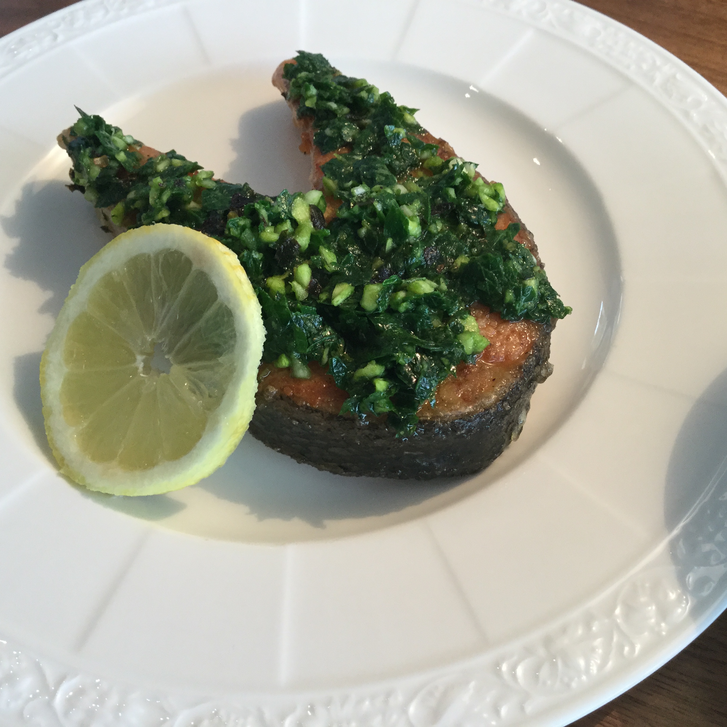 Gremolata ist eine Kräutermischung der lombardischen Küche und ist ein wichtiger Bestandteil von Ossobuco alla milanese, also einer Kalbshachse nach Mailänder Art. Aber auch mit Fisch schmeckt die Gremolata köstlich. Für mein Gericht habe ich ein Lachssteak gewählt und mit einer klassischen Gremolata aus Peterli bestrichen. Je nach Verwendung können aber auch weitere Kräuter hinzugefügt werden wie z.B. Rosmarin, Thymian oder Salbei. Die Kräutermischung schmeckt aber nicht nur frisch und aromatisch, sondern lässt das Gericht auch farblich schön aussehen. Zudem ist Peterli reich an Vitamin C mit rund 160 mg pro 100 g.