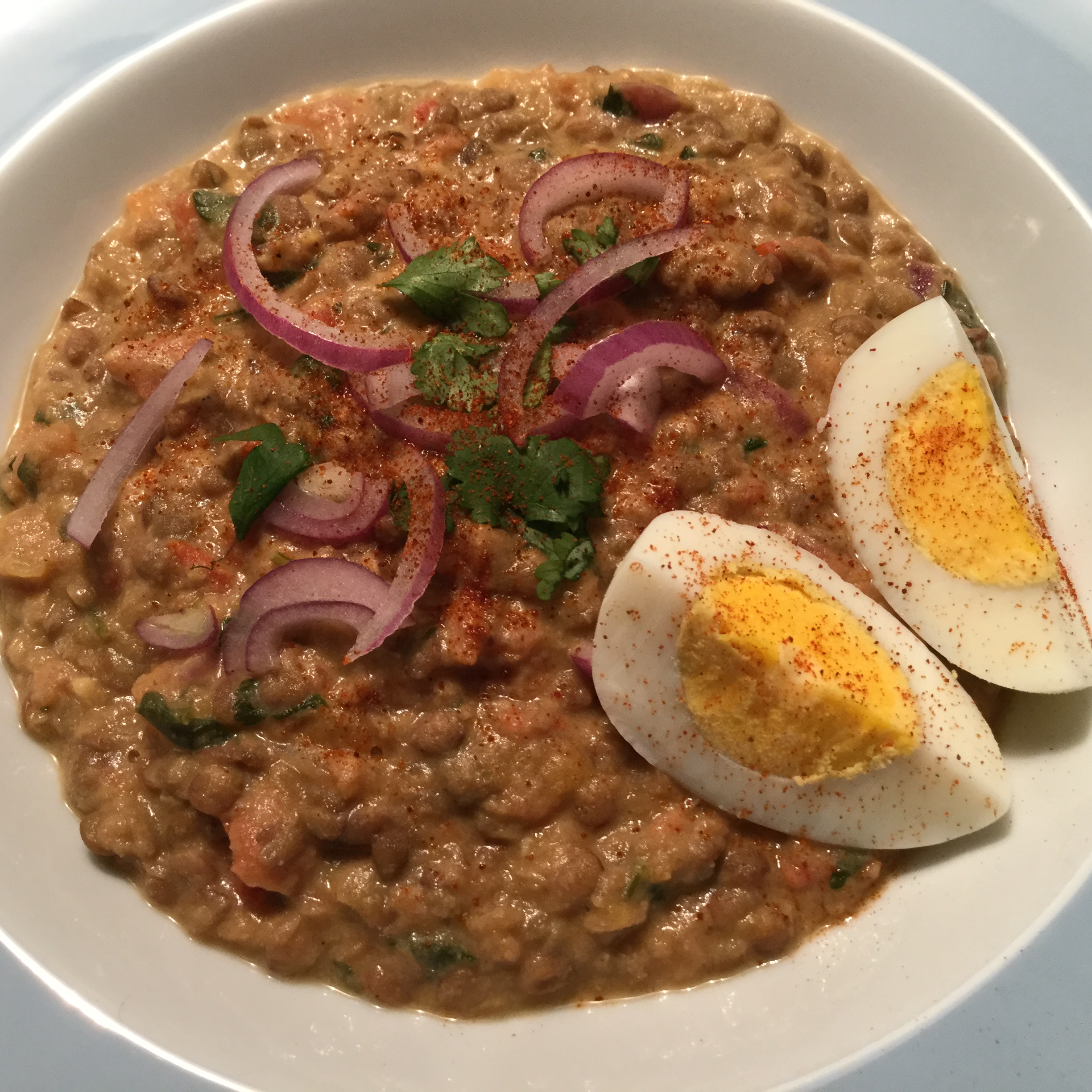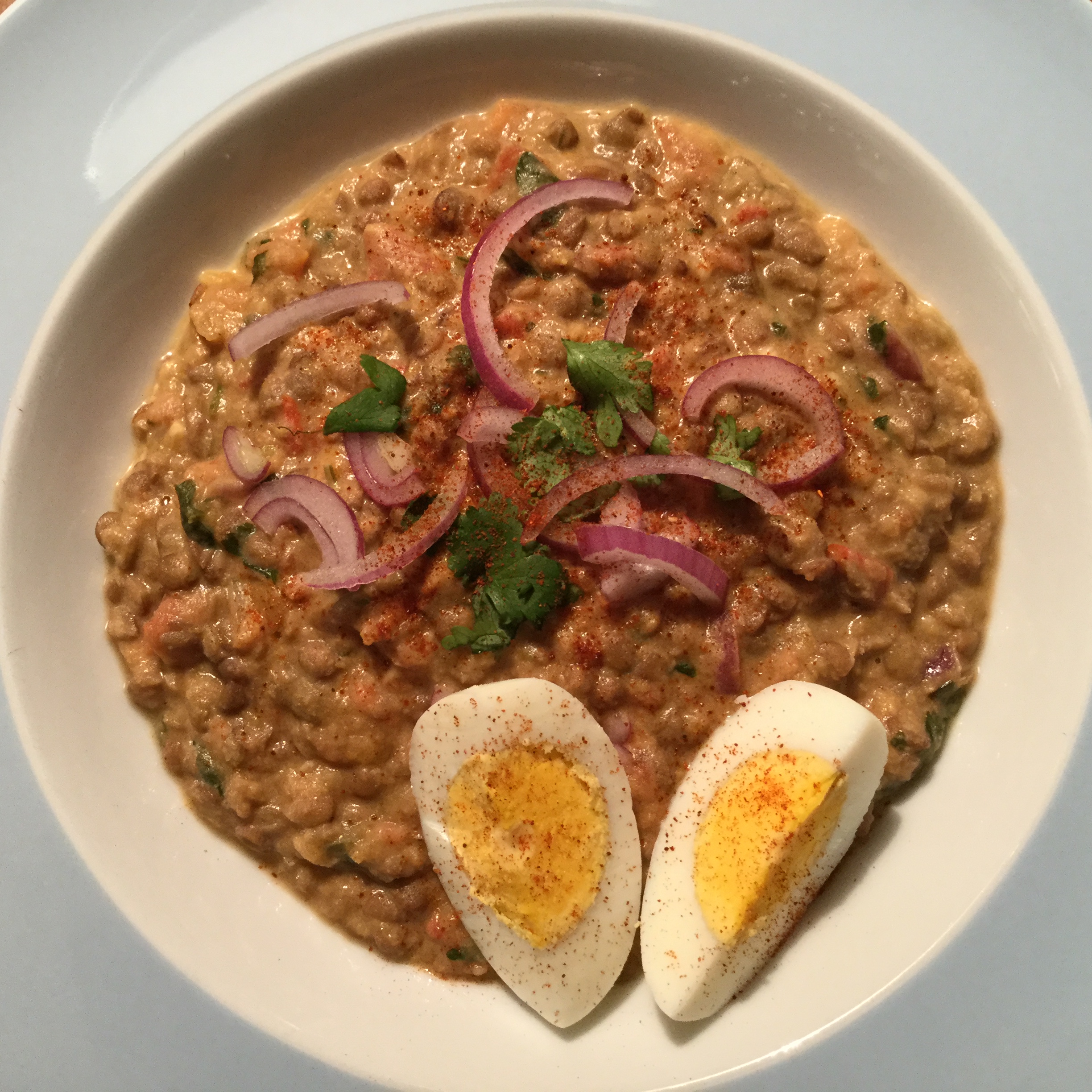 Linsen ähneln in der Form ja ein wenig den Münzen. Aus diesem Grund hat sich wohl in vielen Ländern die Tradition des Linsenessens an Silvester oder auch Neujahr entwickelt. Damit der Geldsegen im kommenden Jahr auch gesichert ist, sollte man einen grossen Teller davon essen. Aber auch wer nicht daran glaubt, darf oder soll ab und zu – und nicht nur über den Jahreswechsel – gesunde Hülsenfrüchte essen. Es muss ja nicht unbedingt immer die klassische Linsen-Würstchensuppe sein. Warum nicht einmal eine orientalisch-angehauchte Variante mit Kreuzkümmel und Tahini. Eine wirklich gelungene Kombination, wie ich finde. Und dazu ein hartgekochtes Ei und fertig ist eine leckere Mahlzeit.