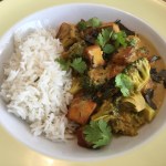 Das Masala auf Teller verteilen, mit dem Koriandergrün dekorieren und mit dem Basmatireis servieren. E Guete!