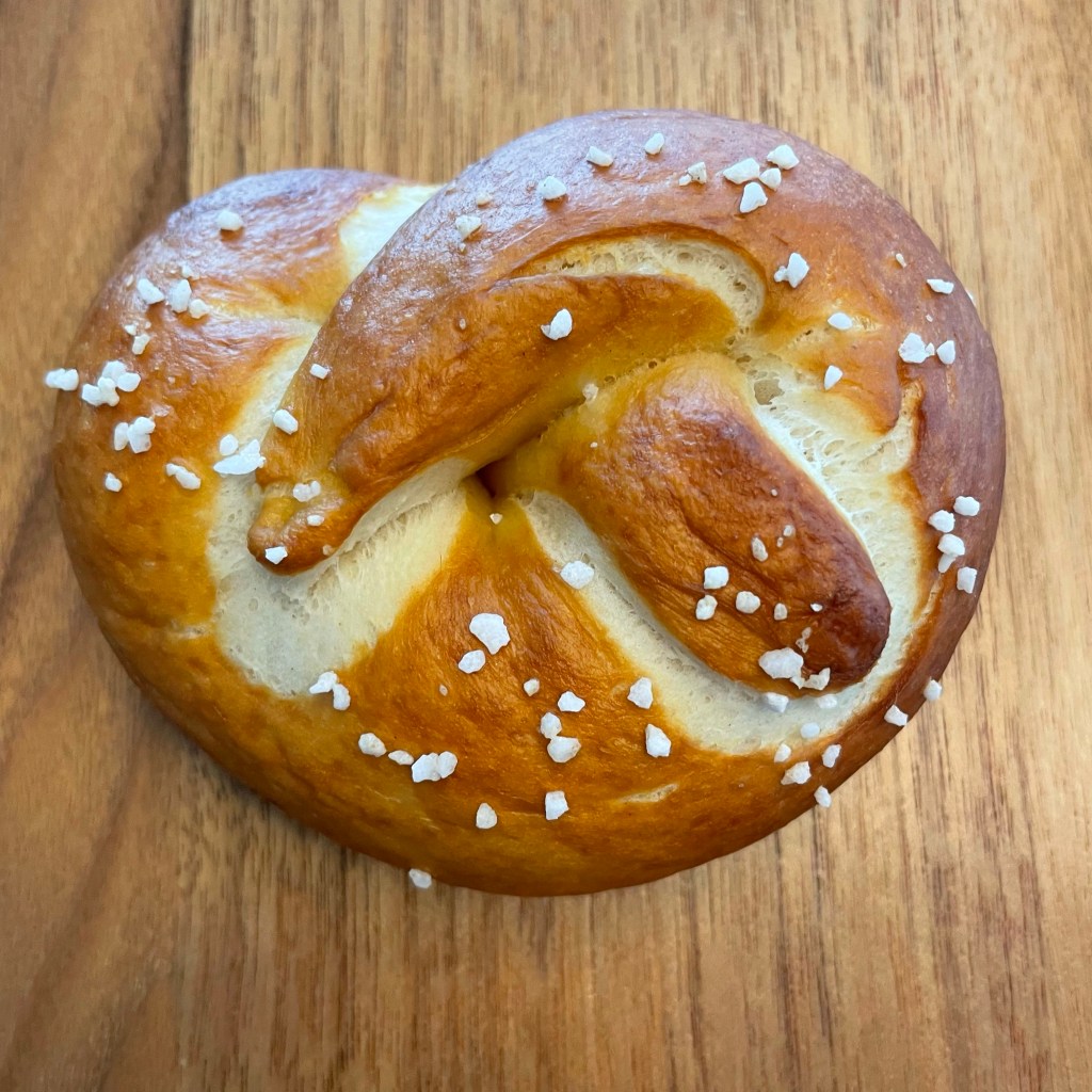 Auf einer leicht bemehlten Arbeitsfläche den Teig in 12 Portionen teilen und Brezeln formen.